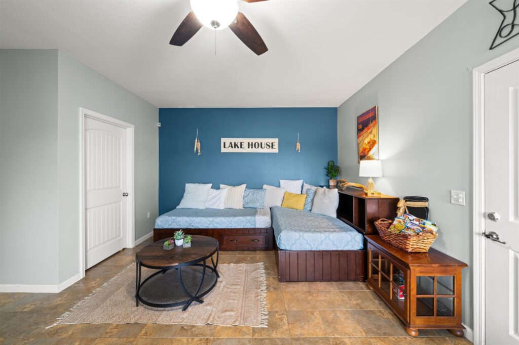 Gallery Sun Deck Downstairs Suite Rec Room/ Day Beds Rec Room Upstairs Bedroom- Queen Queen Bedroom Bathroom Upstairs King Bedroom Upstairs King Bedroom Upstairs Screened in Porch Upstairs Screened in Porch View of Open Concept Kitchen and Living Room Front Porch View